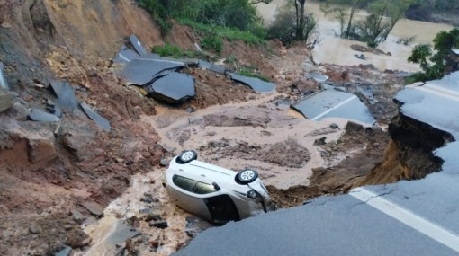 Na madrugada desta quarta-feira (14), uma enorme cratera se abriu no KM 143 da BR-470 em Rios o Sul. A forte chuva acabou gerando um deslizamento de terras e ab...
