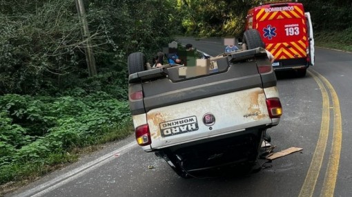 Nesta tarde de terça-feira (30), ocorreu uma saída de pista seguida de capotamento de um veículo Strada com placas de Mercosul na Rodovia 464 em Salto Veloso. C...