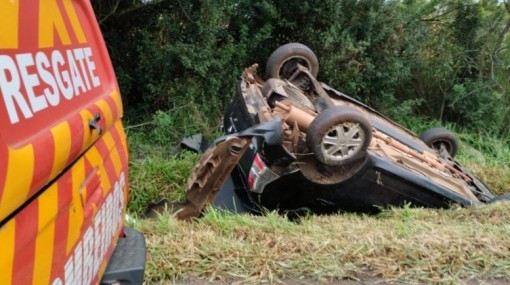 Na tarde deste domingo (07), o Corpo de Bombeiros atendeu a uma saída de pista seguida de capotamento de um veículo Sandero com placas de Curitibanos na BR-470...