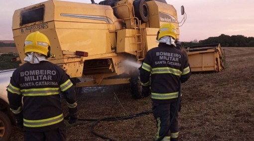 O Corpo de Bombeiros atendeu a um incêndio em uma colheitadeira no interior de Campos Novos. Conforme os bombeiros, a colheitadeira New Holland estava com o foc...