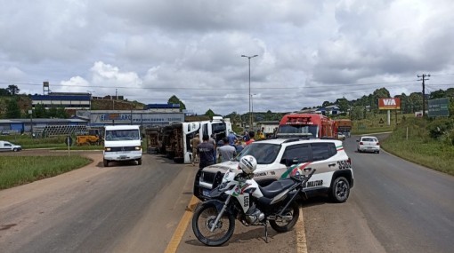 No início da tarde desta quinta-feira (29), uma carreta acabou tombando no trevo da BR-470 com a SC-120 em Curitibanos. Os bombeiros e a Polícia Militar atender...