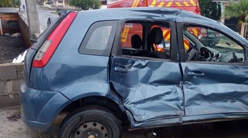 O Corpo de Bombeiros atendeu a uma colisão entre uma moto Honda com placa de Curitibanos e um veículo Classic com placas de Timbó na Avenida Frei Gaspar no Bair...