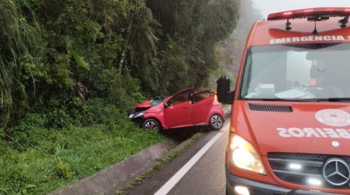 O Corpo de Bombeiros atendeu a um veículo que veio a colidir em uma rocha de grande porte que caiu sobre a pista na BR-470 no KM 205 na Serra dos Pires em São C...