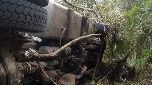 Na tarde desta segunda-feira (22), o Corpo de Bombeiros atendeu a uma saída de pista seguida de tombamento de uma carreta contêiner carregada de madeira tipo ex...