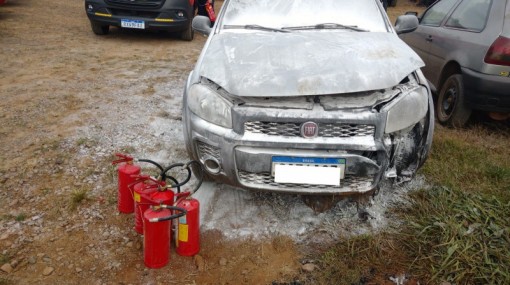 Na tarde deste domingo (21), o Corpo de Bombeiros atendeu a um incêndio em veículo Fiat Strada na localidade de Dez de Novembro, onde estava acontecendo uma Rom...