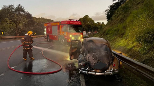 No início da noite deste domingo (09), o Corpo de Bombeiros atendeu a um incêndio em um automóvel na BR-116 próximo a Ponte do Rio Correntes em Santa Cecília. C...