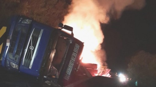 Na noite deste segunda-feira (28) por volta das 21h e 48min, ocorreu um tombamento de uma carreta carregada de madeira que estava em chamas na BR-116 no KM-154...
