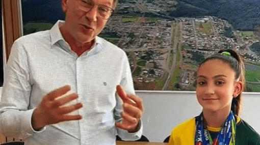 A jovem atleta Isabela Schdatosk Neves de 9 anos, foi recebida na semana passada pelo prefeito Jaime Cesca, em seu gabinete, para um encontro especial em reconh...