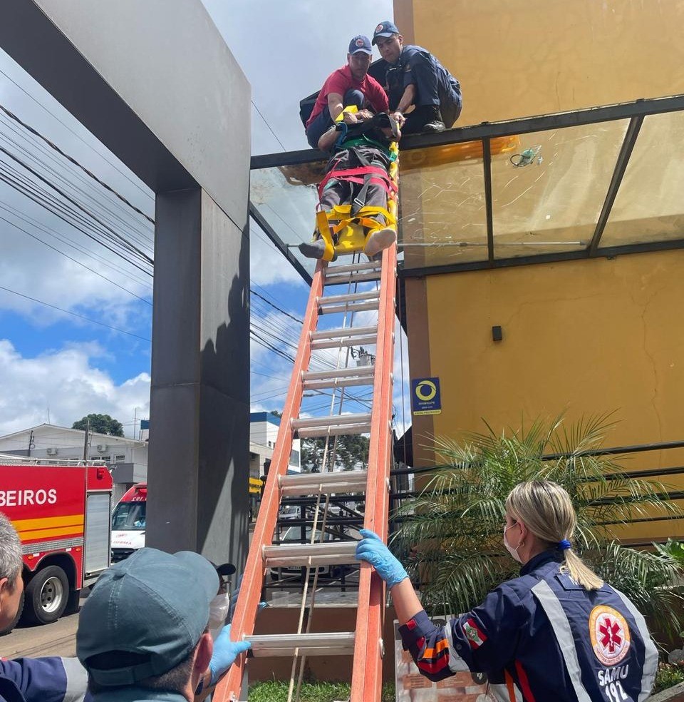 Conforme os registros dos bombeiros, de imediato foi atendido a vítima sendo retirada através de protocolo de salvamento em altura e repassado ao suporte avançado do SAMU. O homem relatou que estava consciente e com dormência em algumas partes do corpo.