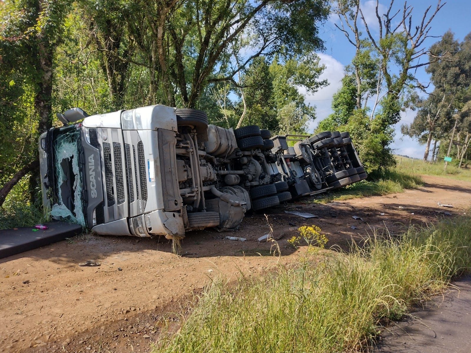 Na manhã desta terça-feira (08) por volta das 08h e 25min, o Corpo de Bombeiros foi acionado para atender a um capotamento de uma carreta carregada de frango na BR-470 próximo em Curitibanos.