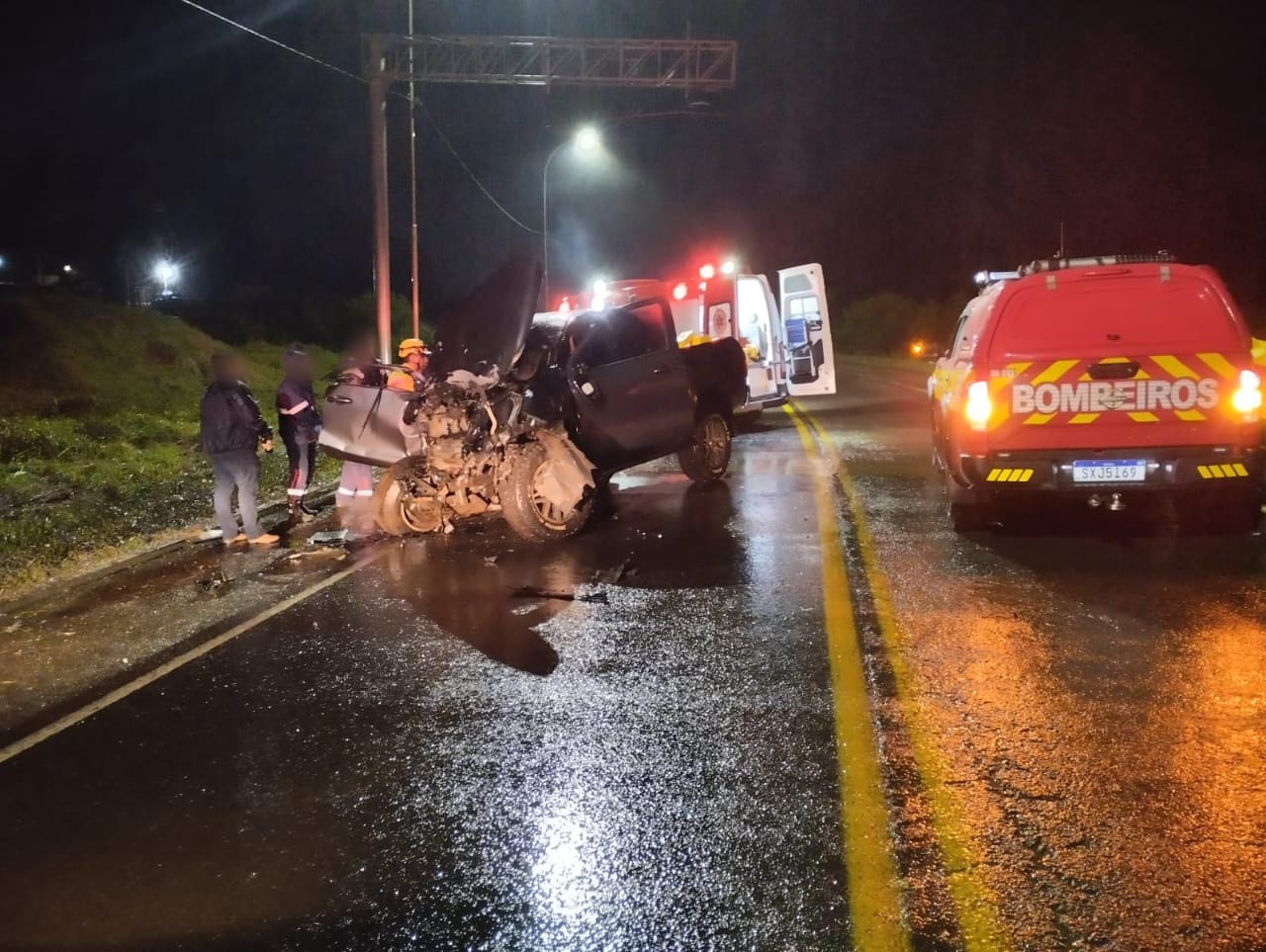 De acordo com informações do Corpo de Bombeiros, o acidente envolveu um caminhão Mercedes-Benz Atego, com placas de Chapecó, e uma camionete Toyota Hilux, com placas de Curitibanos. O condutor do caminhão, um homem de 58 anos, foi encontrado consciente, orientado e andando pelo local. Ele não apresentava ferimentos e recusou atendimento médico.