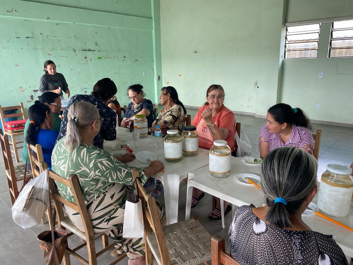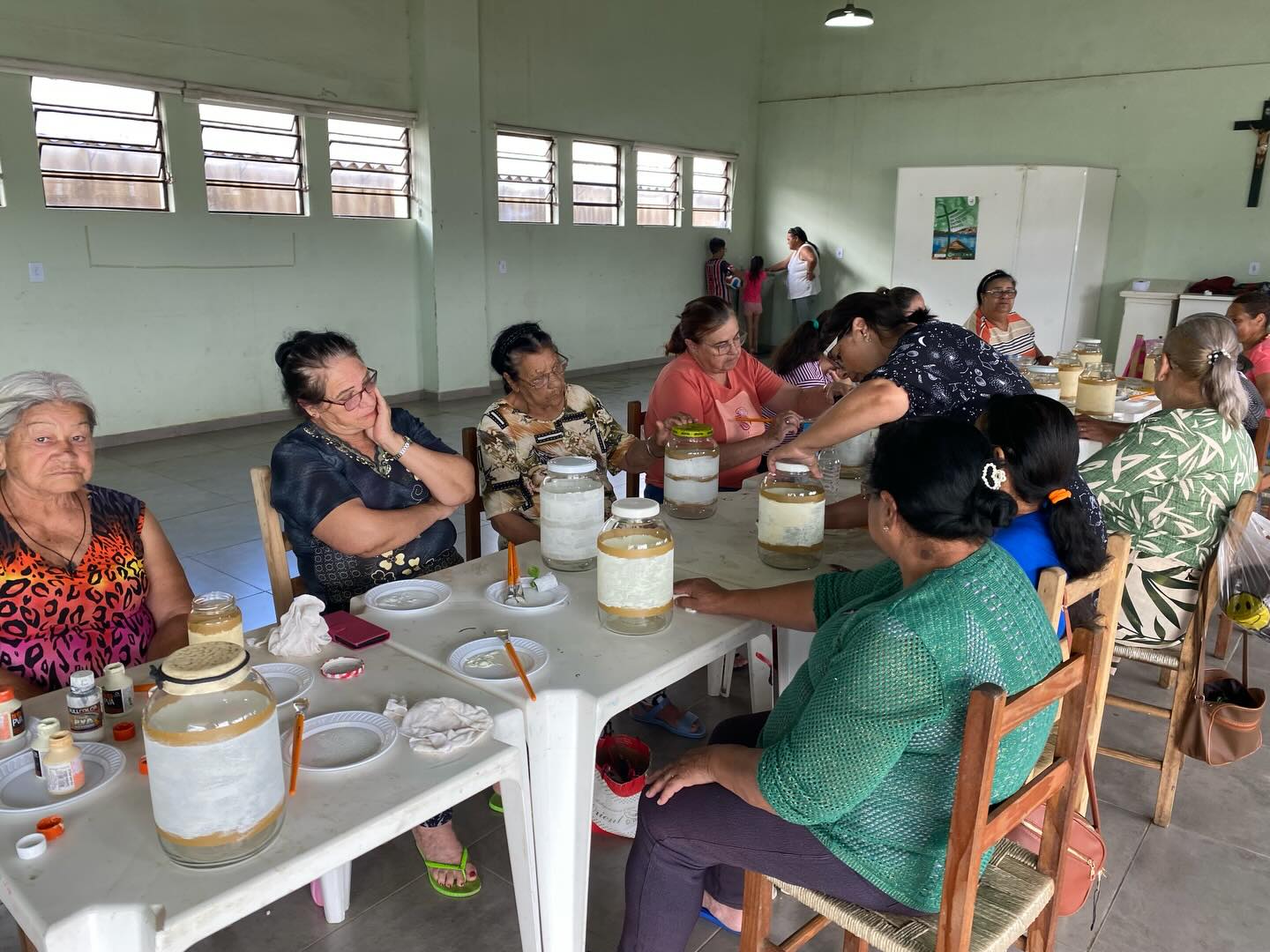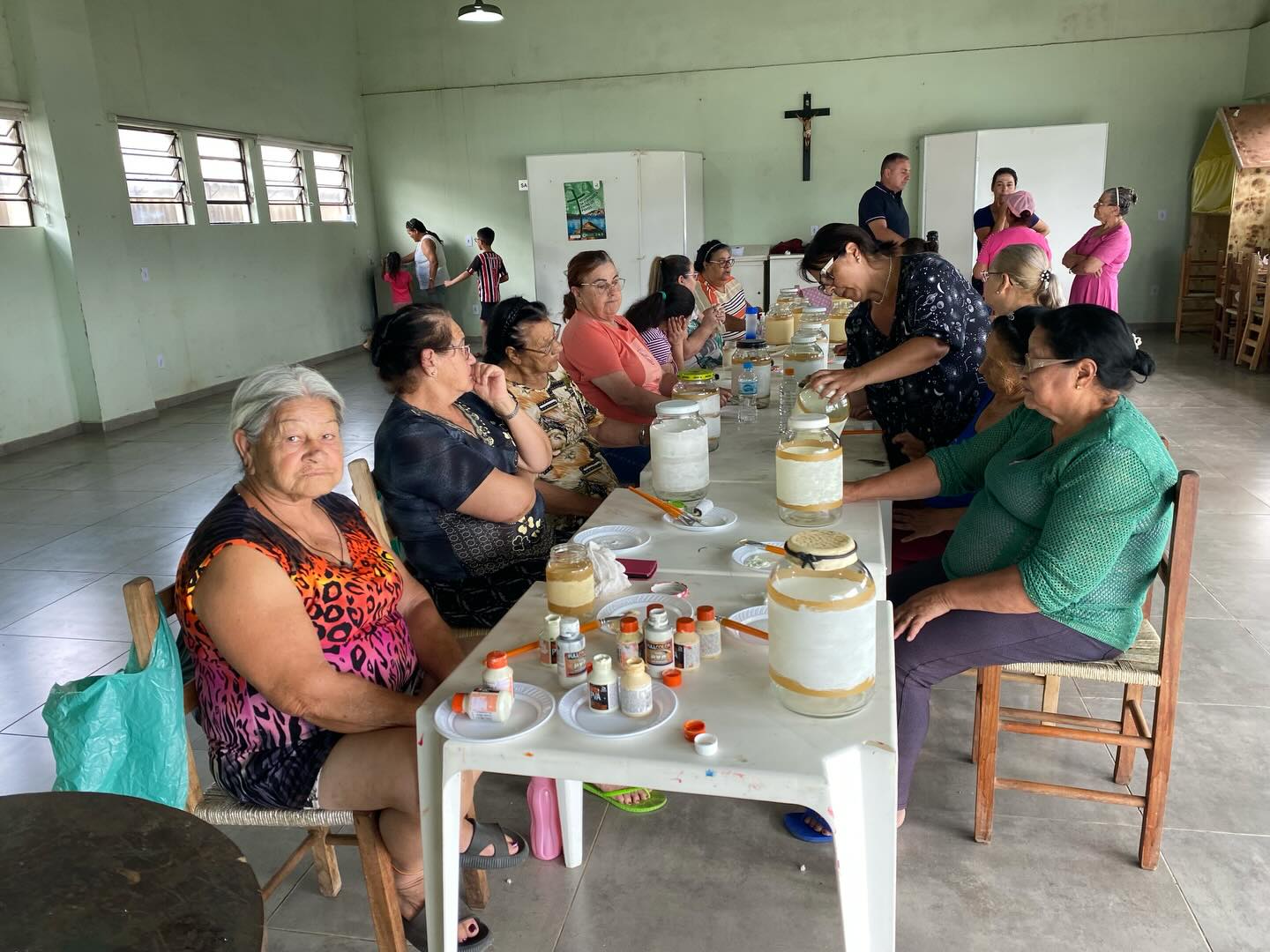 No primeiro dia de retorno, as alunas participaram de uma aula de pintura em vidro. Foto: Prefeitura de Ponte Alta do Norte.