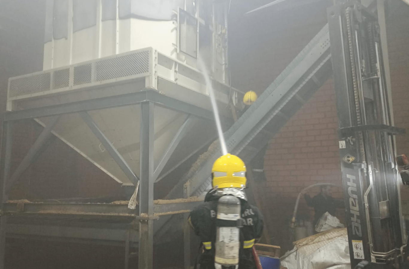 De acordo com relatos da empresa, o incêndio iniciou na máquina paletizadora, pois a mesma trancou o rolamento, sobreaqueceu e estava jogando pallets em brasa para dentro do resfriador, sendo que o resfriamento da máquina acontece utilizando ar e dessa forma os pallets em brasa mais ar sendo inflado para dentro da máquina ocorrendo o incêndio.