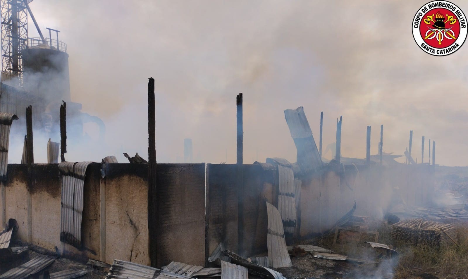 Na manhã deste sábado (15), por volta das 09h e 06min ocorreu um incêndio em um barracão de aproximadamente 30m x 70m localizado na área industrial em Curitibanos.