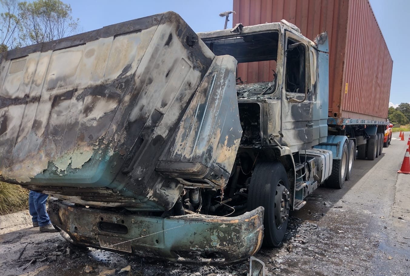 De acordo com os bombeiros, o caminhão com placas Mercosul tinha como motorista um homem de 44 anos que nada sofreu, o mesmo relatou o motor disparou e quando abriu a capota, o motor já estava em chamas, sendo utilizado aproximadamente 2000 litros de água.