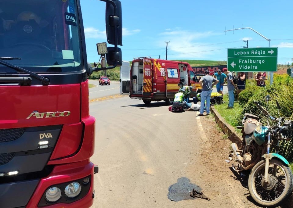 No início da tarde deste domingo (06), o Corpo de Bombeiros atendeu a uma queda de motociclista de 38 anos na SC-452 e Fraiburgo.