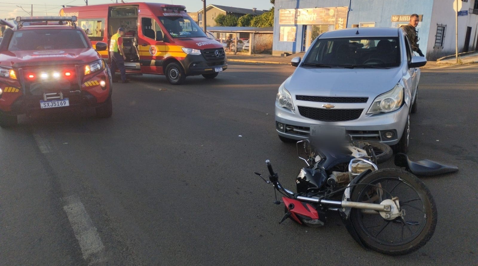 No início da noite desta segunda-feira (24) por volta das 18h13min, ocorreu uma colisão entre um veículo e uma moto na Avenida Leoberto Leal no Bairro Aparecida em Curitibanos e motociclista acabou ferido.