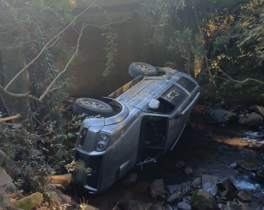 Na tarde deste domingo (21), o Corpo de Bombeiros atendeu a uma saída de pista seguida de queda de um veículo Mitsubishi Pajero com placas de Macieira na Linha Mendes em Salto Veloso.