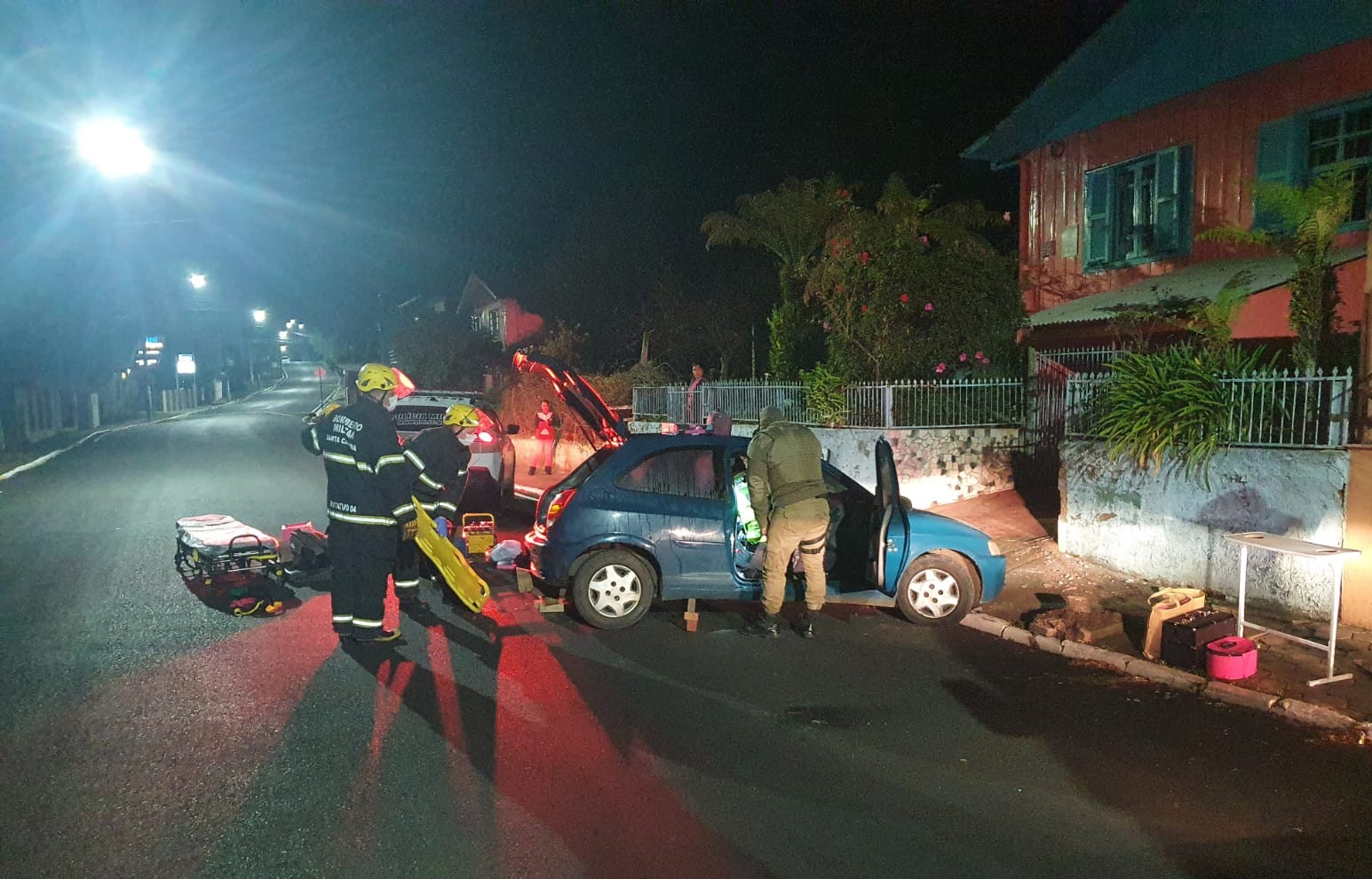 Na noite desta terça-feira (12) por volta das 23h e 17min, o Corpo de Bombeiros foi acionado para atender a um veículo que veio a colidir contra a calçada em Videira.