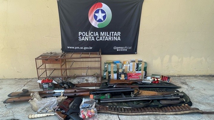 Durante as buscas os policiais militares ambientais apreenderam armas longas e curtas, munições de diferentes calibres e partes de animais silvestres. Um homem foi detido e encaminhado à Delegacia de Polícia Civil, junto com o material apreendido, para os procedimentos legais.