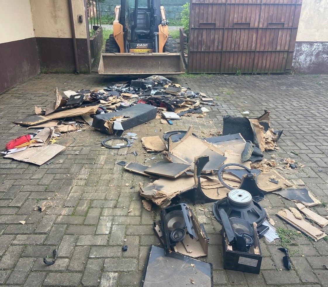 A destruição dos equipamentos foi realizada com o auxílio de uma máquina da Prefeitura Municipal, que garantiu a execução do processo de forma adequada e segura. Os resíduos resultantes da ação foram destinados corretamente, seguindo normas de descarte ambiental.