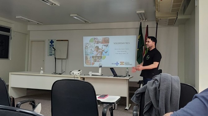 O objetivo foi compartilhar práticas relacionadas à Gestão de Riscos em Emergência de Saúde Pública, especialmente frente a desastres naturais e tecnológicos que afetam a população catarinense.