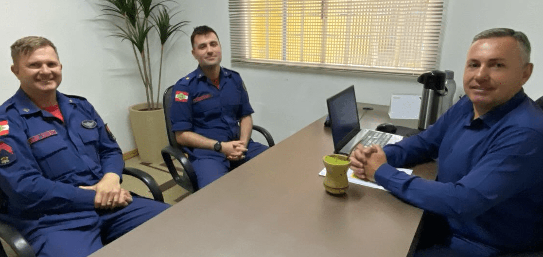 Nesta segunda-feira (01), o Executivo Municipal de Ponte Alta do Norte recebeu a visita do Aspirante a Oficial BM João Pedro de Medeiros e do 3º Sargento BM Mauri Edgar Kieski. O encontro teve como pauta principal o desenvolvimento de ações do Corpo de Bombeiros no município e a apresentação dos resultados do primeiro ano de implantação do Programa Bombeiro Mirim.
