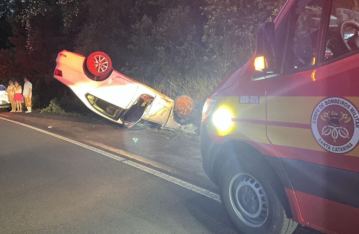 De acordo com os bombeiros, o automóvel estava capotado no acostamento da via e tinha como motorista um homem de 23 anos e a passageira sua mãe. O condutor recusou atendimento e ficou no local aguardando a Polícia para realizar o boletim de ocorrência e a passageira foi atendida e encaminhada ao hospital de Santa Cecilia com apenas com escoriações.